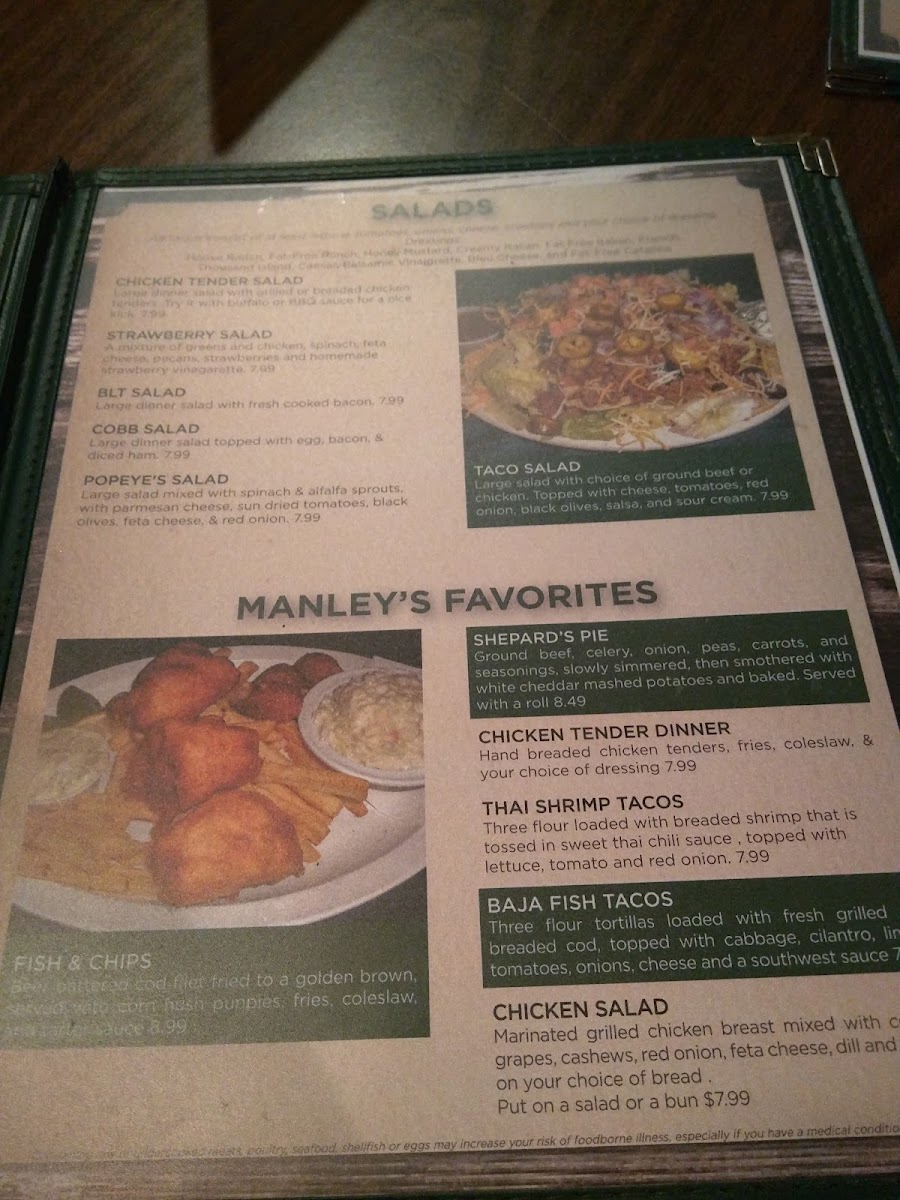 Pair your meal with delicious sides like homemade coleslaw ($1.99) or seasoned fries ($2.99). Each dish at Manley's oozes warmth and flavor, making it a must-experience destination for those seeking comfort and taste.